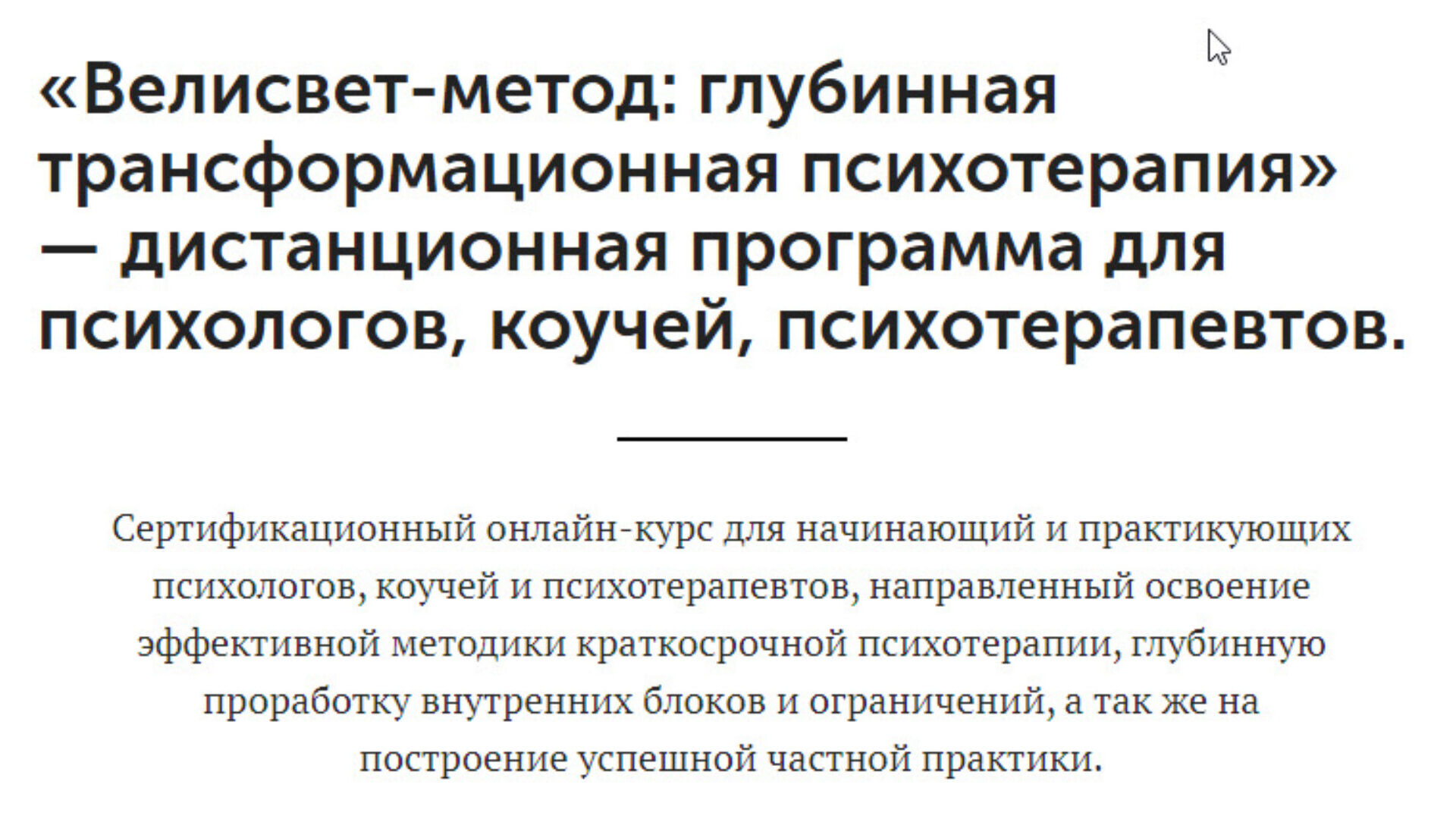 Отзывы о курсе «Велисвет-метод: глубинная трансформационная психотерапия» от Степана Велисвета
