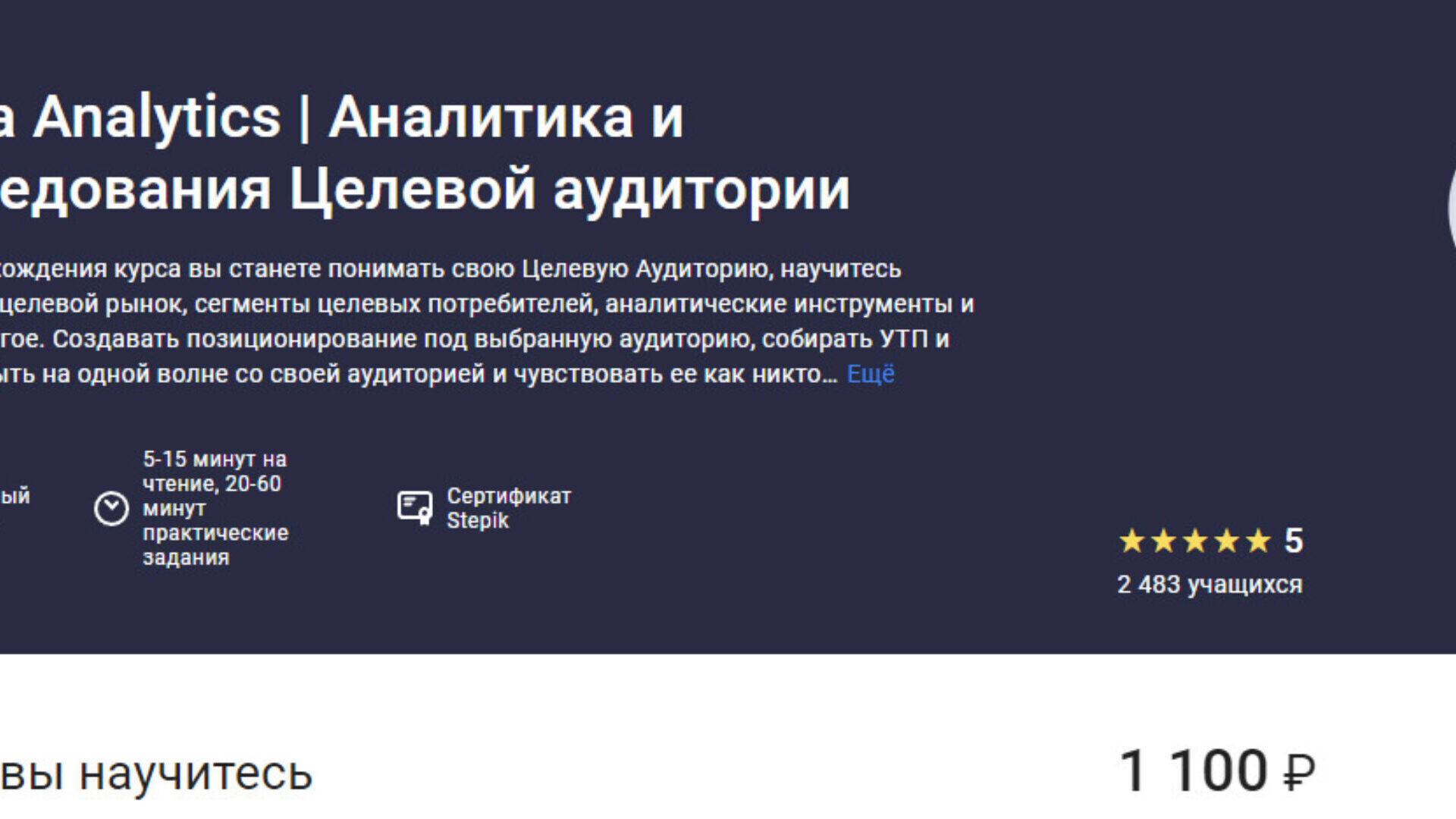 Отзывы о курсе [IBaza Analytics] Аналитика и исследования Целевой аудитории (Stepik)