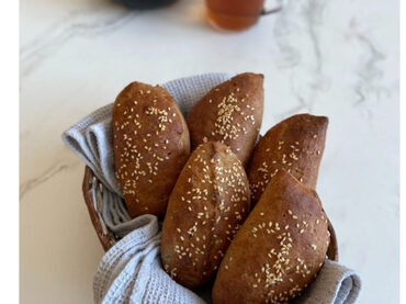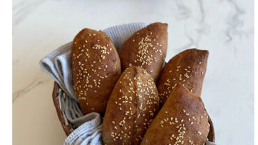 Состав теста: вода, рисовая закваска, мука из белого и бурого риса (можно заменить мукой из белого риса), мука из зеленой гречи, амарантовая мука, кукурузный крахмал, псиллиум, соль.