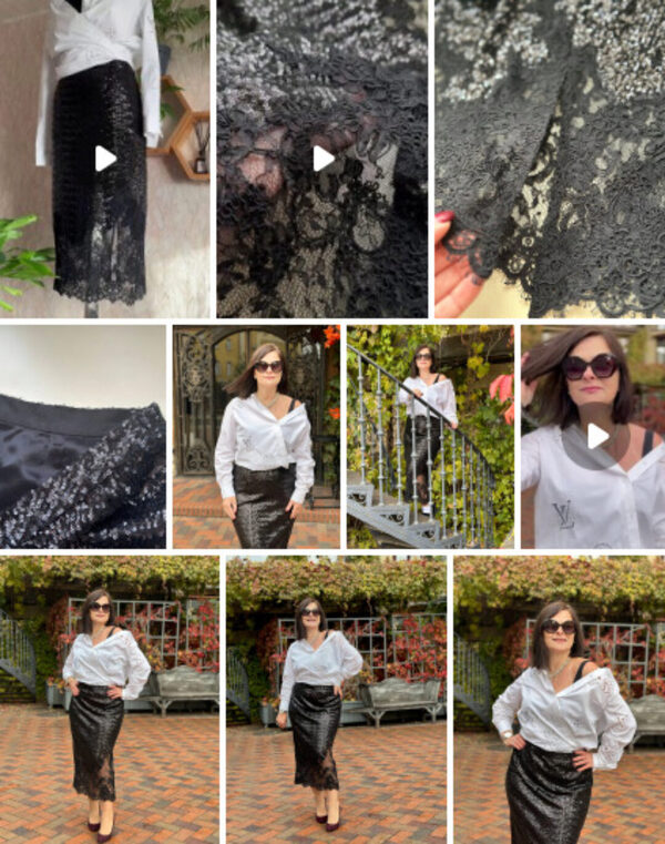 Сейчас в ней построение базовой прямой юбки и полный пошив юбки из пайеточной ткани с кружевом.