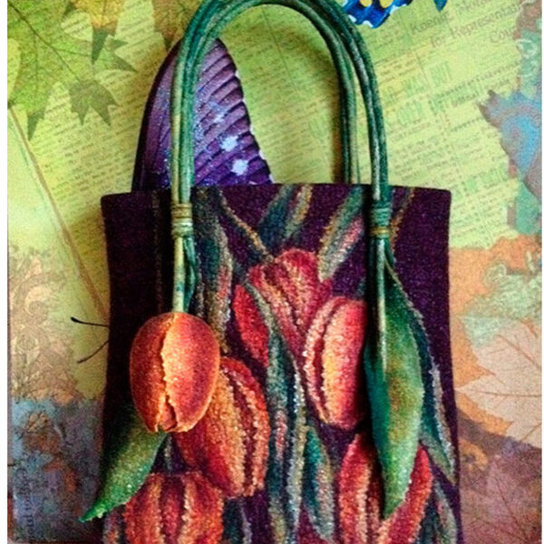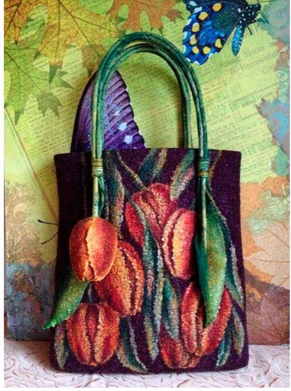 Идея: создать сумку в виде букета тюльпанов, будто вы держите его за стебли и цветы свисают вниз.