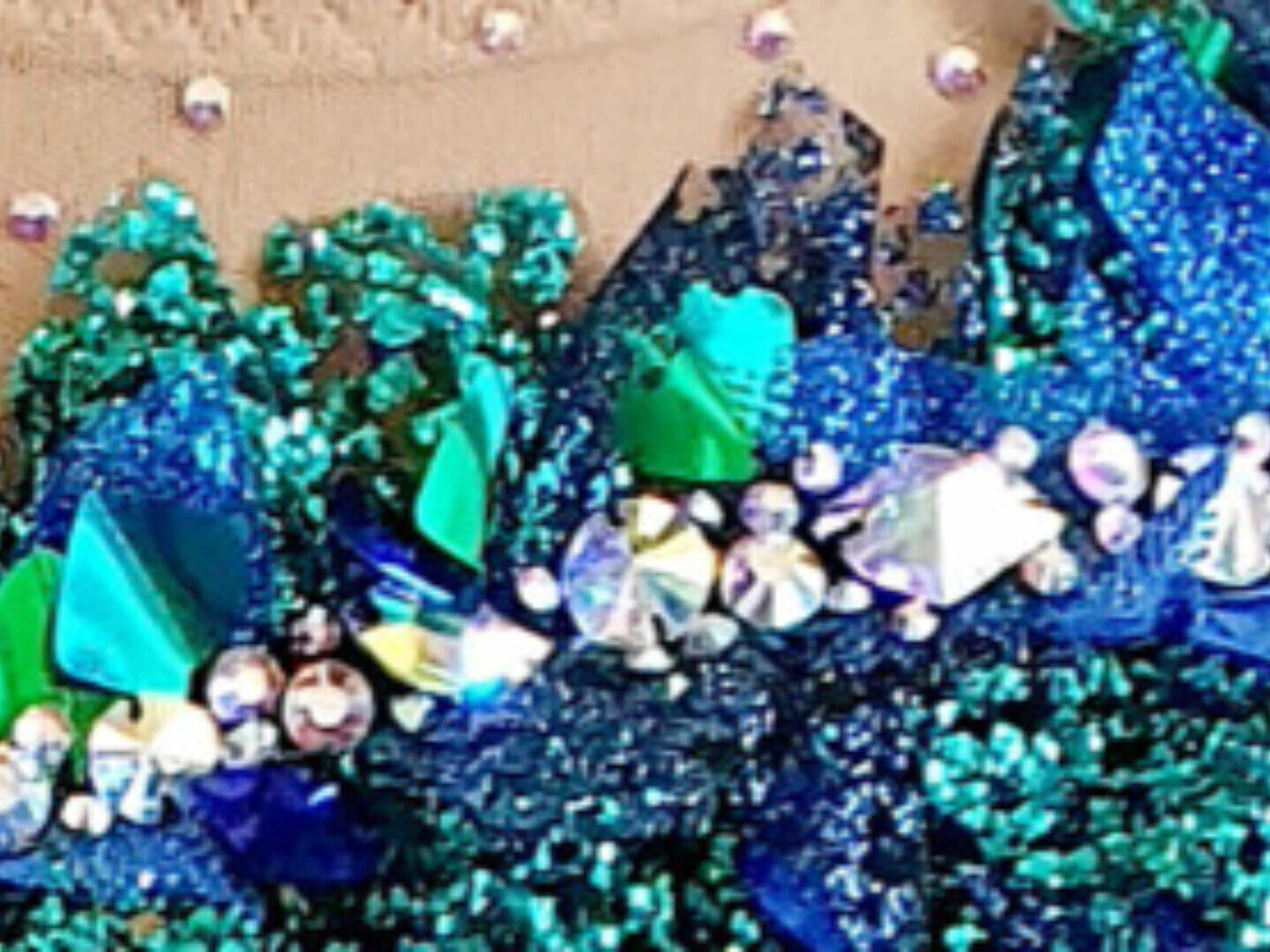 Шьем зеленый купальник. Часть 10. Декорируем глиттерную ткань камнями