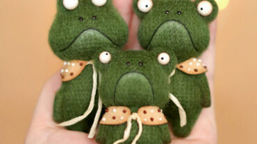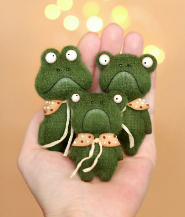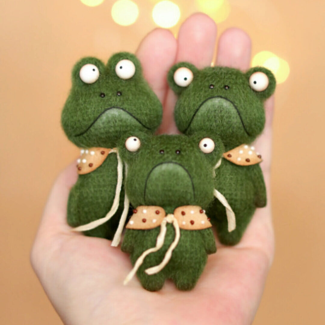 Потешные жабы ростом 6-8см связаны из пряжи Real40 крючком №1,5. Пришивные только основы для глаз у мамы и малыша. Оживите целую семейку чудиков или выберите понравившийся размер и форму будущего создания.