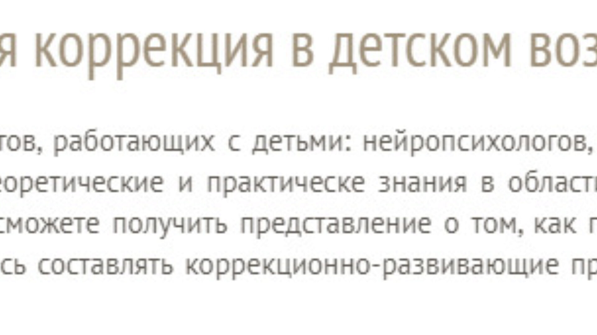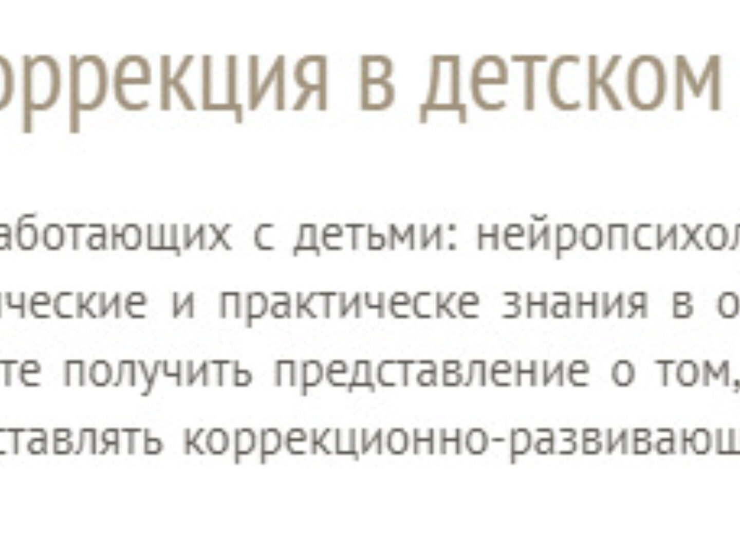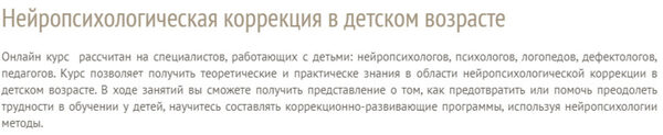 Онлайн курс рассчитан на специалистов, работающих с детьми: нейропсихологов, психологов, логопедов, дефектологов, педагогов. Курс позволяет получить теоретические и практическе знания в области нейропсихологической коррекции в детском возрасте. В ходе занятий вы сможете получить представление о том, как предотвратить или помочь преодолеть трудности в обучении у детей, научитесь составлять коррекционно-развивающие программы, используя нейропсихологии методы.