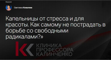 Светлана Ковалева «Капельницы от стресса и для красоты. Как самому не пострадать?» — Клиника Калинченко слив скачать