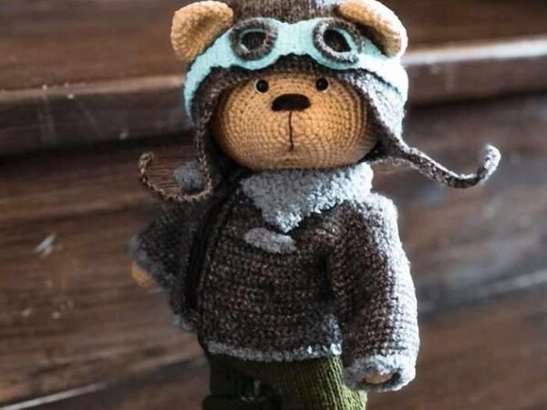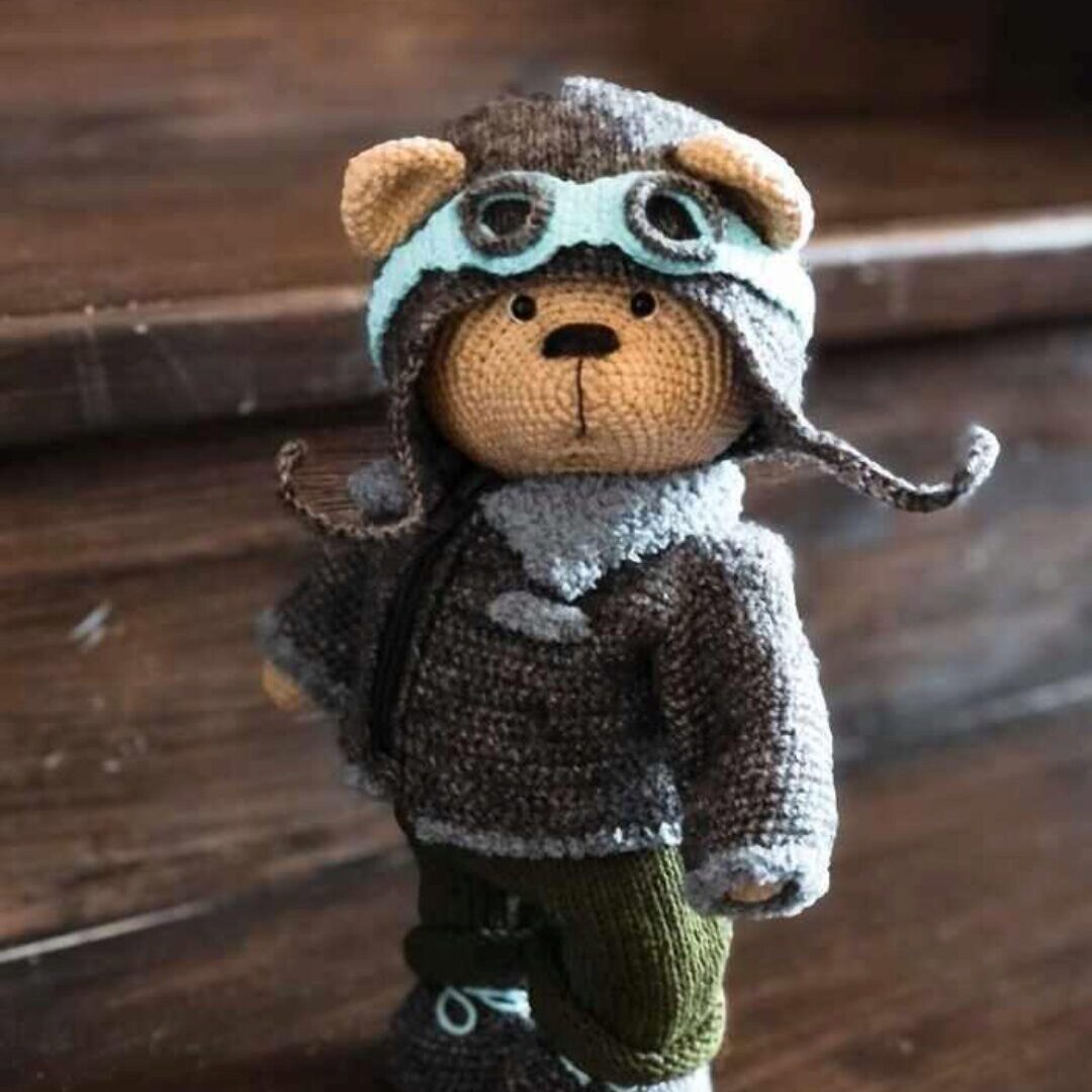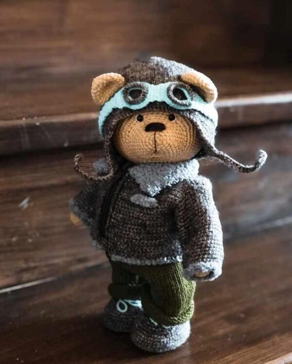 Мастер-класс в формате pdf 28 стр. Состав: шапочка, очки, ботинки, комбинезон, куртка летчика, самолет.