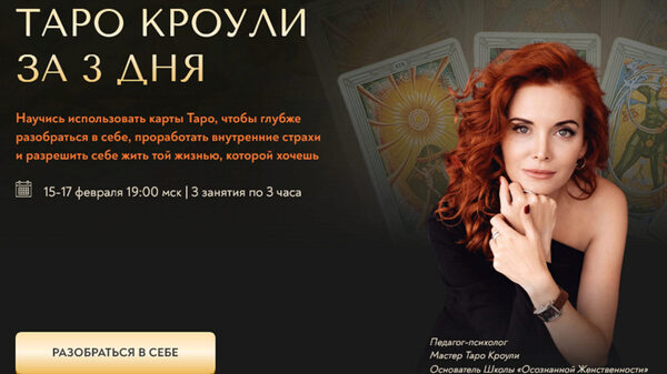 Получите глубокое понимание себя, кто вы и как вы появляетесь в социуме, как вас воспринимает окружение и вы сами. Освоите навык работы с Таро Алистера Кроули, сможете делать расклады себе и знакомым