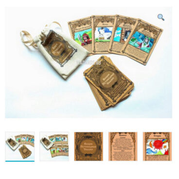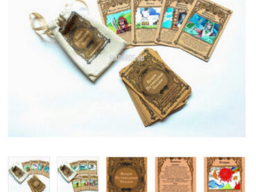 Размер карт 8х12 см. Упаковка — холщовый мешочек с рисунком.