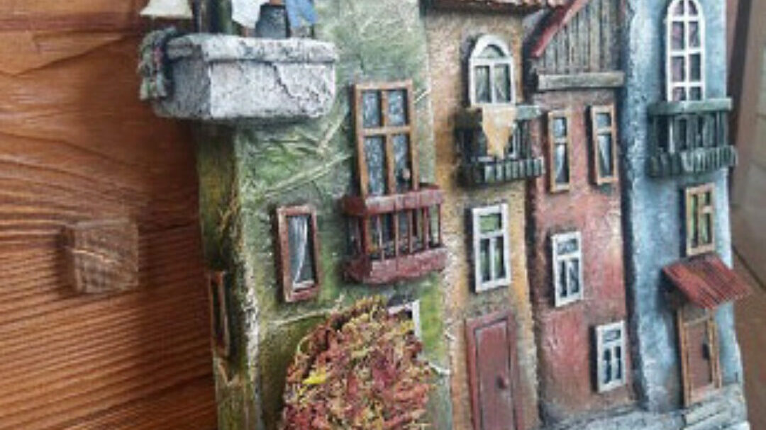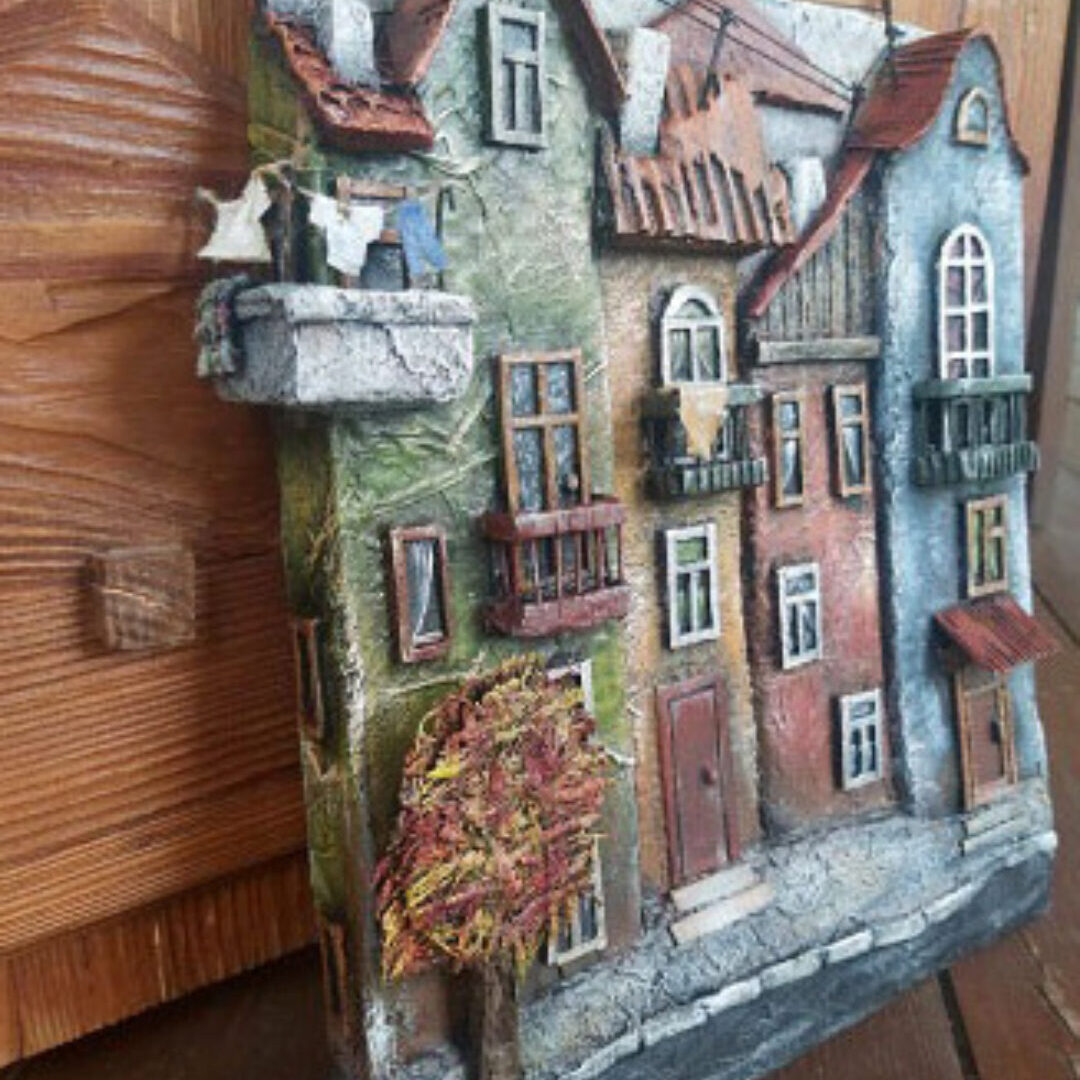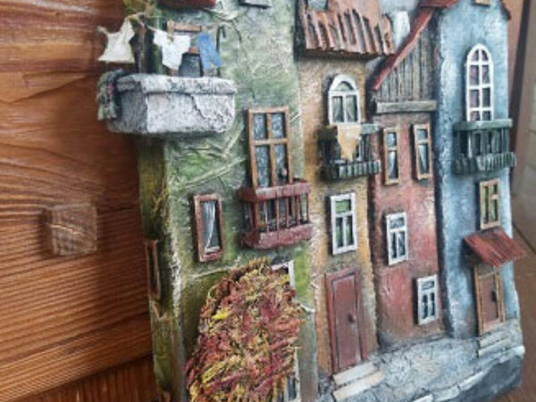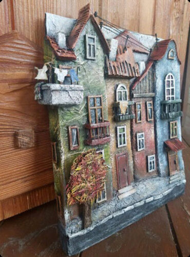 - Основным материалом для нашего творчества будет обычная картонная коробка, из которой мы создадим уникальное произведение и придадим ему невероятную объемность. Только посмотрите на эти балкончики!