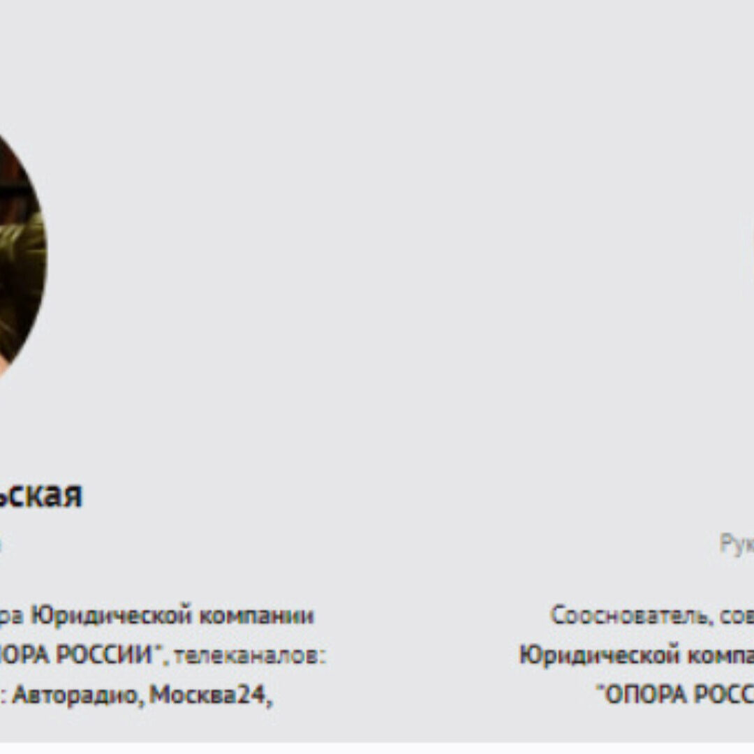 - Эксперт по правовым вопросам МГО «ОПОРА РОССИИ», телеканалов: РБК, МИР ТВ, Россия 1, - а также Радиостанций: Авторадио, Москва24, Москва.ФМ и др. Интервью можно посмотреть на сайте компании - URVISTA