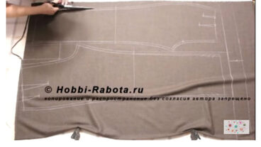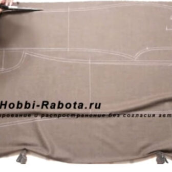 После построения чертежа, показана примерка бумажных деталей (задней и передней половинок) на столе. Показано, как откорректировать их в бумаге, до кроя на ткани.