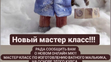Видеокурс по подвижной ватной елочной игрушке «Зайка болтушка» . В этом курсе: Работа с молдами! В том числе самостоятельное их изготовление Работа с ватой. Работа без «пачканья» рук, приносящая удовольствие Построение чертежа с правильными пропорциями для куклы любого размера Секреты подвижного