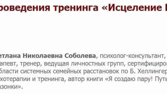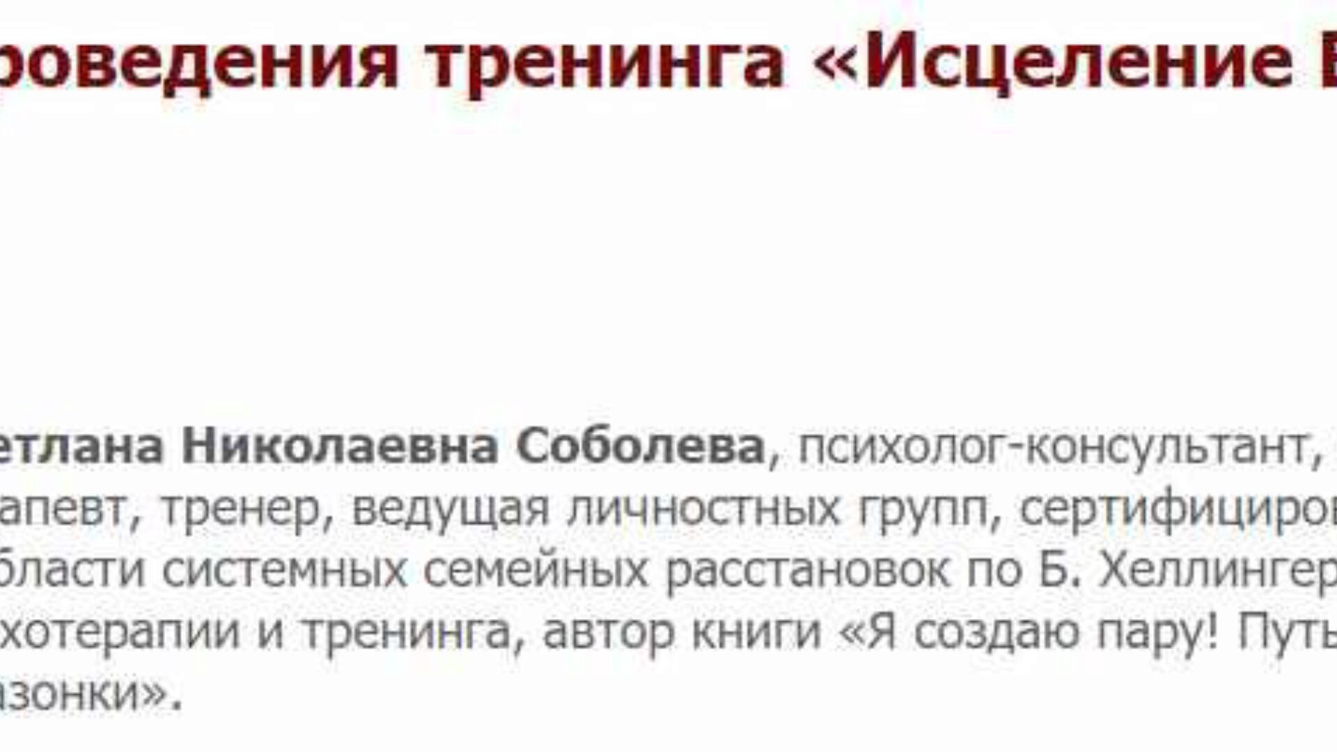 Отзывы о курсе Методика проведения тренинга «Исцеление Внутреннего ребенка» от Светланы Соболевой