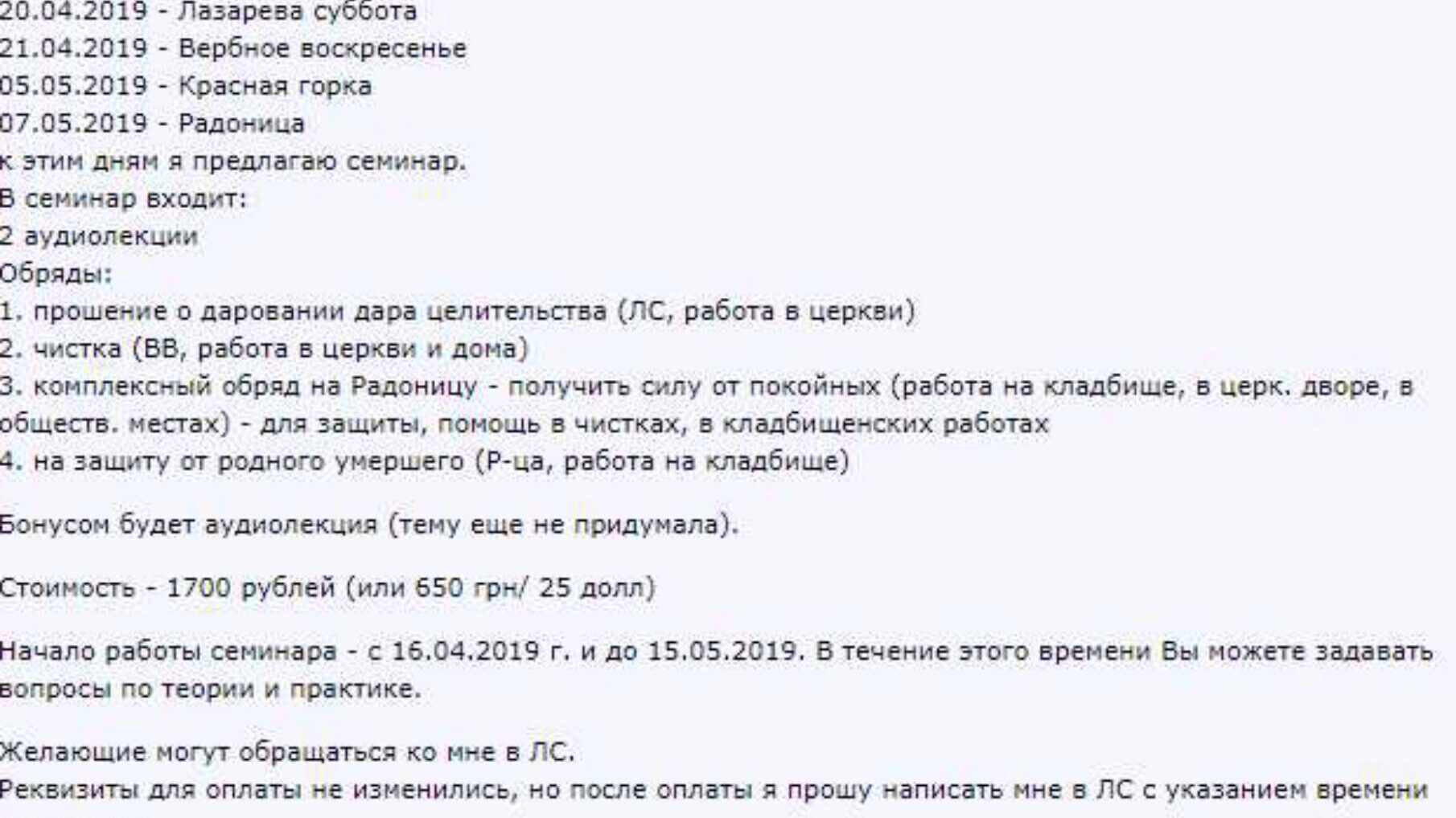 Объявляется новый набор в школу деревенского колдовства и славянского язычества. Продолжительность одного курса – 2 месяца. Формат текстовый и аудио Школа будет действовать на постоянной основе и присоединиться можно в любой момент Стоимость одного курса обучения 200 $ в соответствии с курсом
