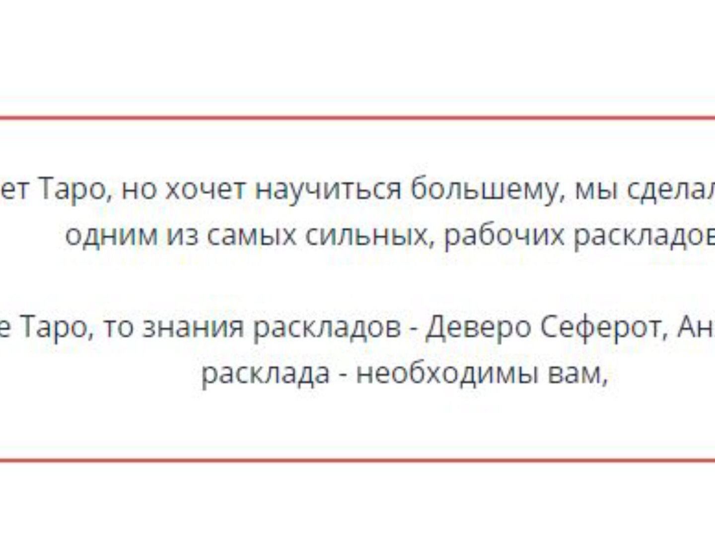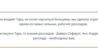 Этот расклад позволяет увидеть не только сценарий развития события или отношений, но и отвечает на вопросы : почему это произошло и для чего это произошло, открывает причинный уровень ситуации и высший смысл.