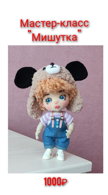 Мастер-класс «Рада» Высота 30 см. Голова, туловище поворотные. Крепление бёдер и плеч на пластиковых суставах. Крепление локтей и колен на шарнирно-нитевых суставах. Глазки вязаные, вставные. Можно менять направление взгляда. Одежда и обувь съёмные. Мастер класс оформлен в PDF. Цена мк 2500р.
