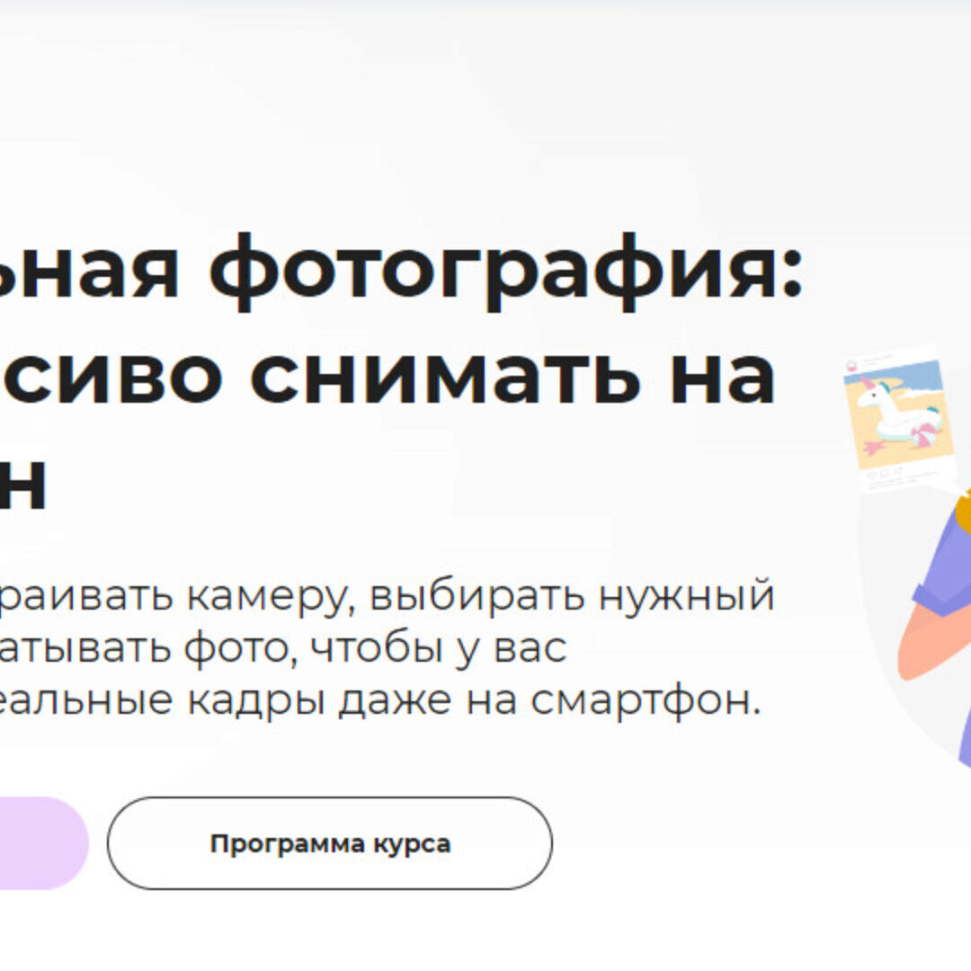 Программа курса 9 часов 5 блоков Технические особенности современного телефона Познакомитесь с лектором и научитесь настраивать камеру в смартфоне под разные задачи. Попробуете определить, когда снимок сделан на телефон, а когда — на профессиональную камеру. Введение в курс Возможности современных