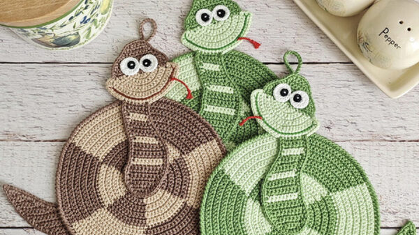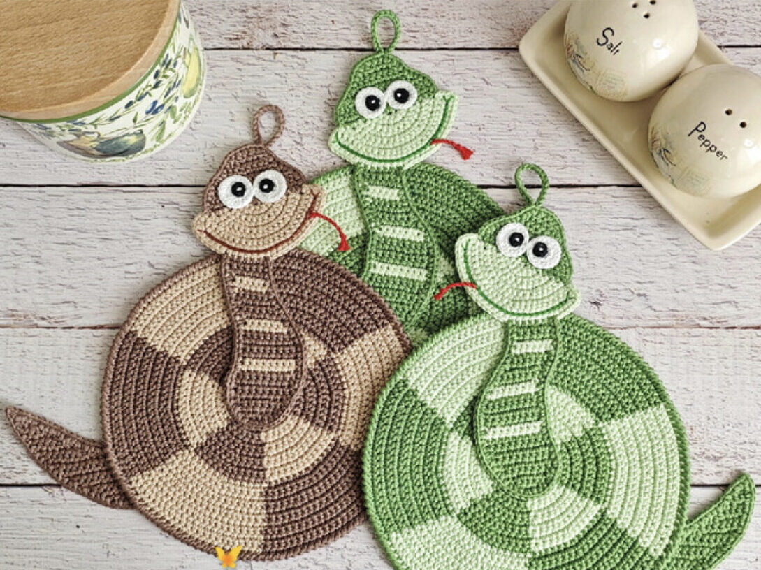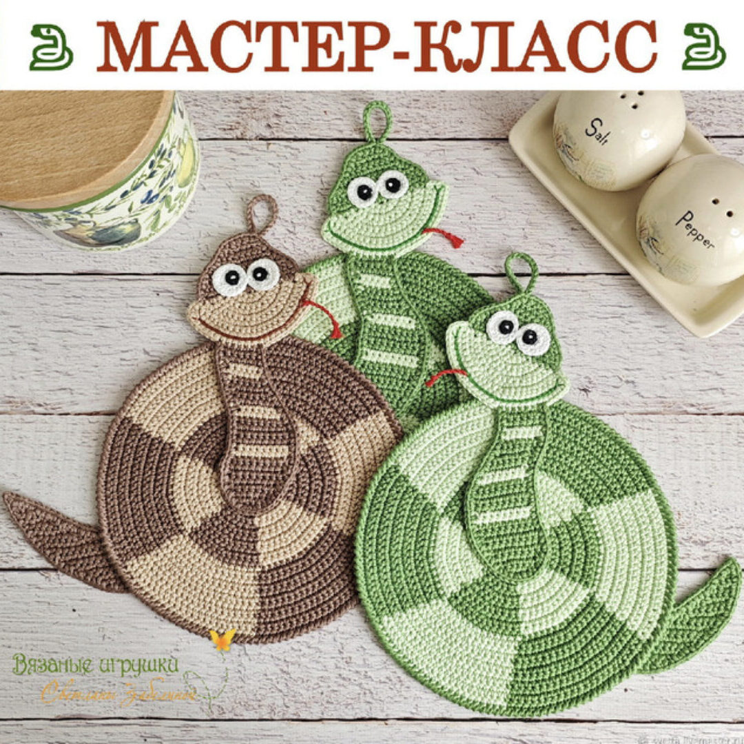 Курс Прихватки Веселые змейки, автор Светлана Забелина. Мастер-класс по вязанию крючком декоративных прихваток в виде забавных веселых змеек - символов и талисманов 2025 года.