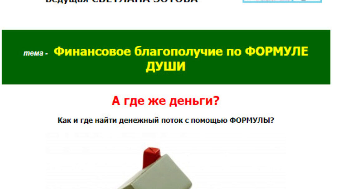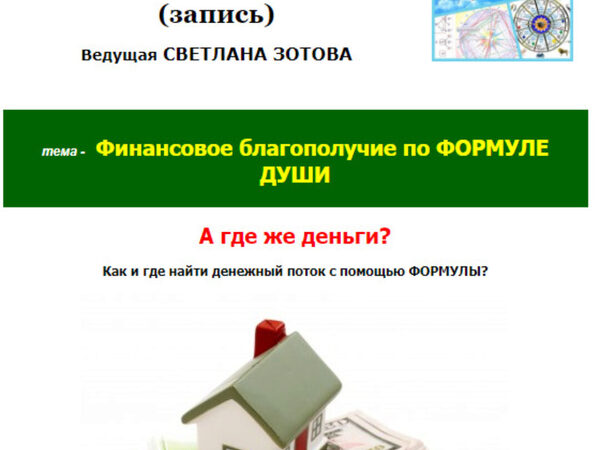 Светлана Зотова «Финансовое благополучие по формуле души» — Школа Формула Души слив скачать