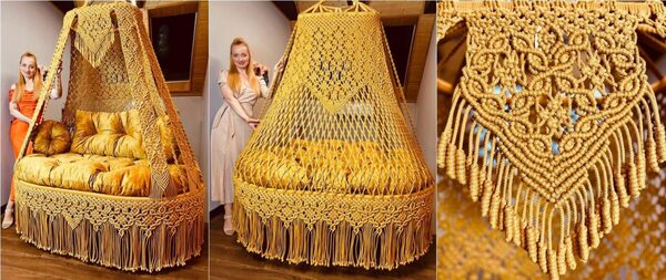 Встречайте кресло «Райский сад»: мою новую модель и мастер-класс! Ещё 6 месяцев назад я приступила к плетению для заказчика, который пожелал совместить большой, сложный узор шатра и удобство посадки кресла. Форму изделия клиент выбрал, а узор попросил создать на мой вкус. Я сразу поставила себе