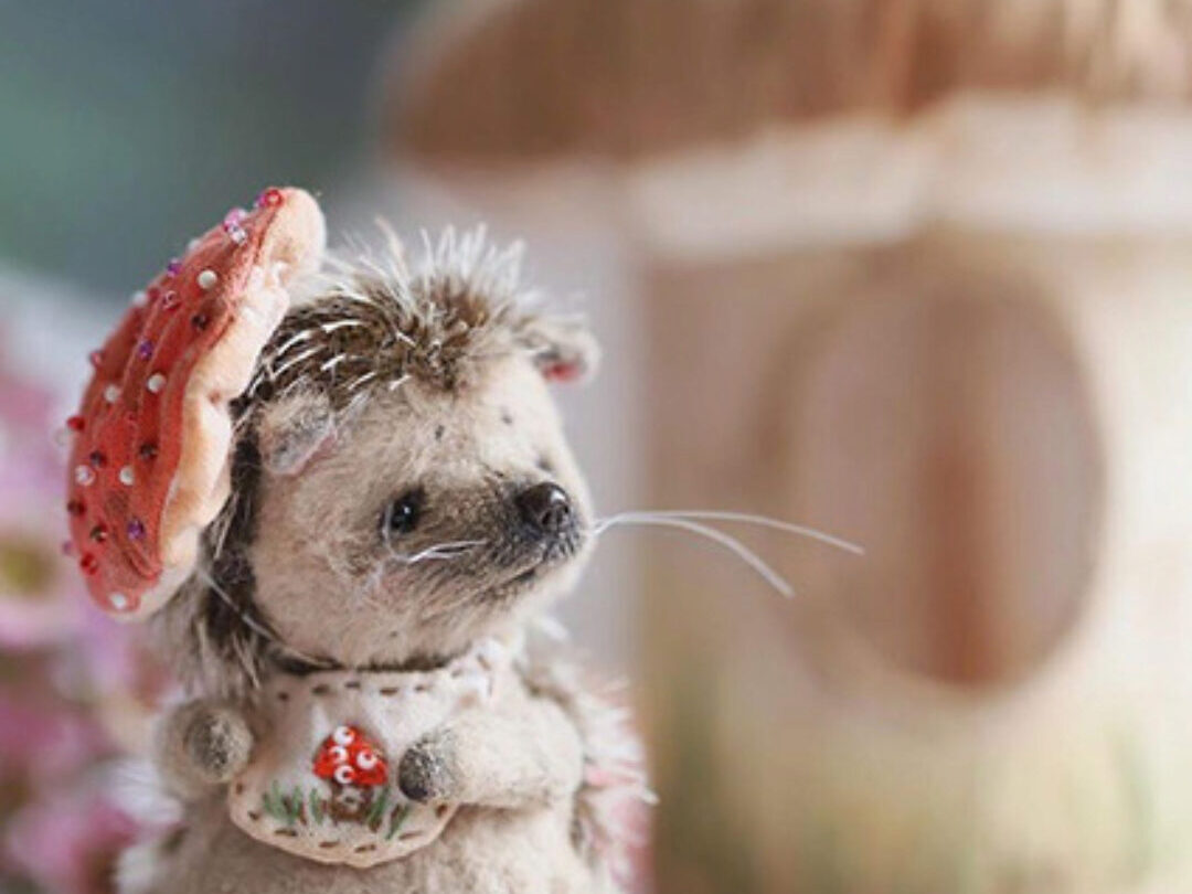 ⁃ Пошаговый процесс создания маленького ёжика ростом всего 7 см, одежды и домика. ( подойдёт для тех кто даже иголку в руках не держал)