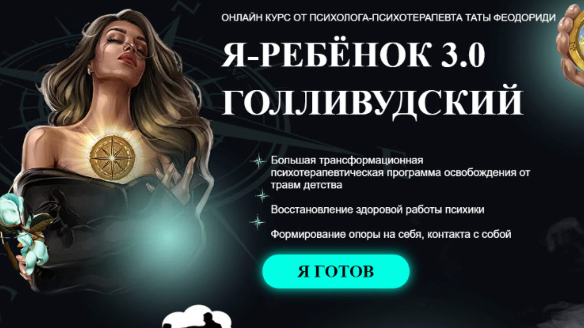 Я - ребёнок (Тата Феодориди) Онлайн-курс «Я-ребёнок» 25 уроков Старт 4 февраля, окончание 3 Марта. Длительность: 5 недель, +доступ к урокам на 3 недели после окончания курса. Уроки проходят на платформе GetCourse, они в записи. Есть возможность смотреть с телефона, задавать вопросы в комментариях.