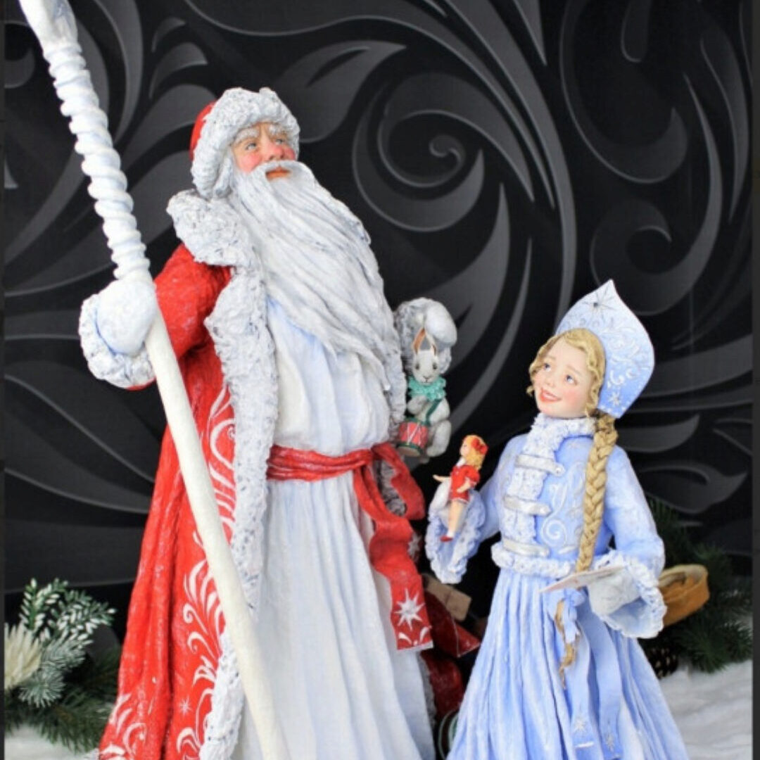 ПРИГЛАШАЮ НА МАСТЕР КЛАСС!!! ДЕД МОРОЗ И СНЕГУРОЧКА!!! ЦЕНА СО СКИДКОЙ 1800₽ Дедушка Мороз 25 см Снегурочка 18 см И вторая пара Дед мороз 21 см Снегурочка 15 см Отсутствует начало росписи глаз деда мороза и снегурочки. Курс только видео!