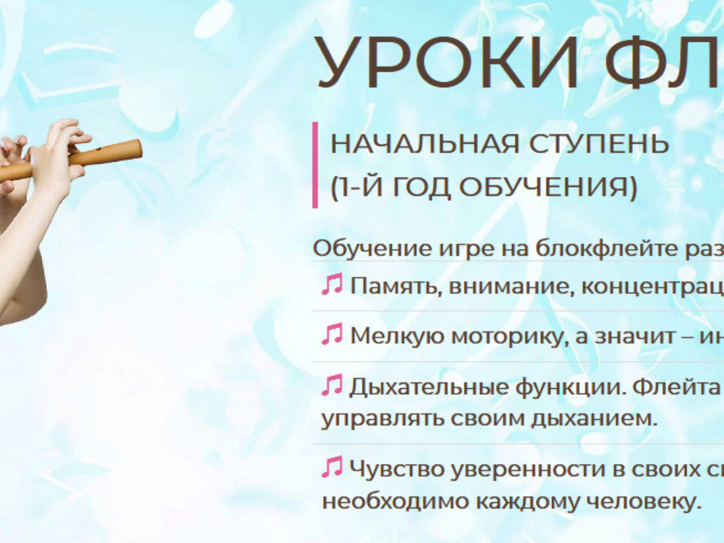 Занятие начинается до того, как ребёнок возьмёт в руки флейту.