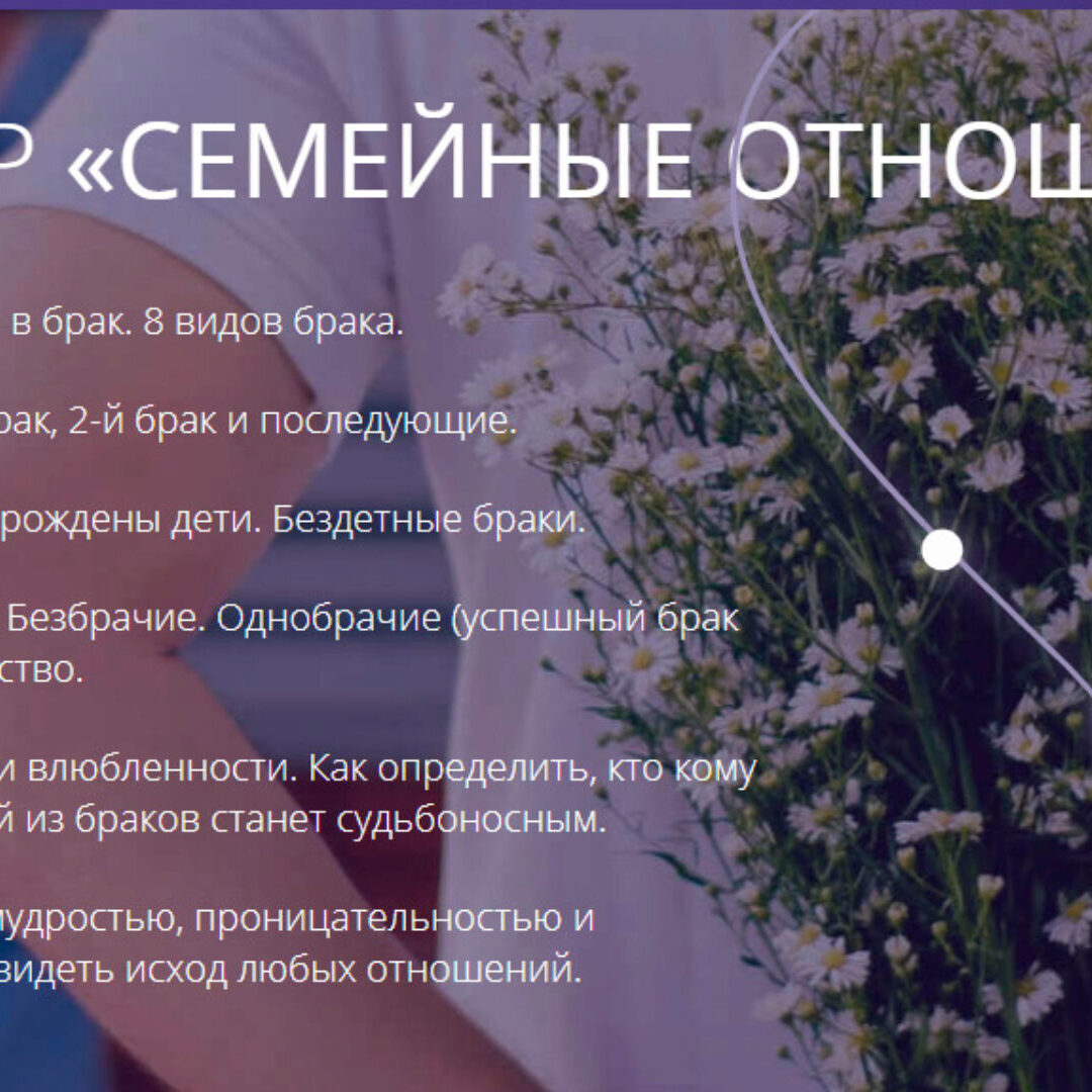- Разбор таких нюансов в области прогнозирования отношений, которые невозможно найти где - то еще! Личное общение и передача навыка прогнозирования. Ответы на ваши вопросы.