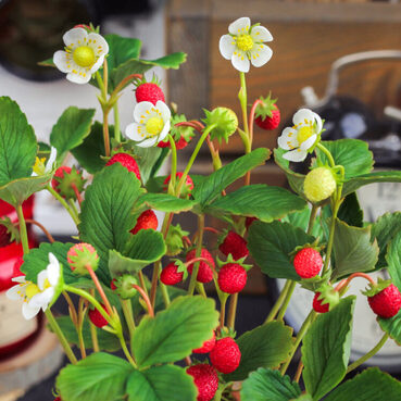И второй вариант: соберём с вами композицию с растущей земляникой в кашпо. Сделаем абсолютно реалистичную имитацию земли, посадим нашу Землянику в кашпо и задекорируем.