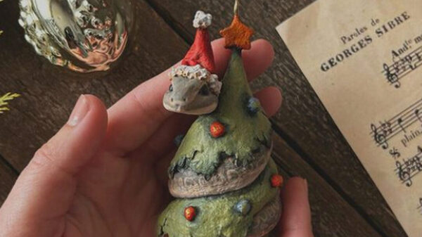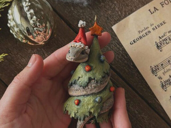 Змея с ёлочкой выполнена полностью из ваты без проволочных каркасов