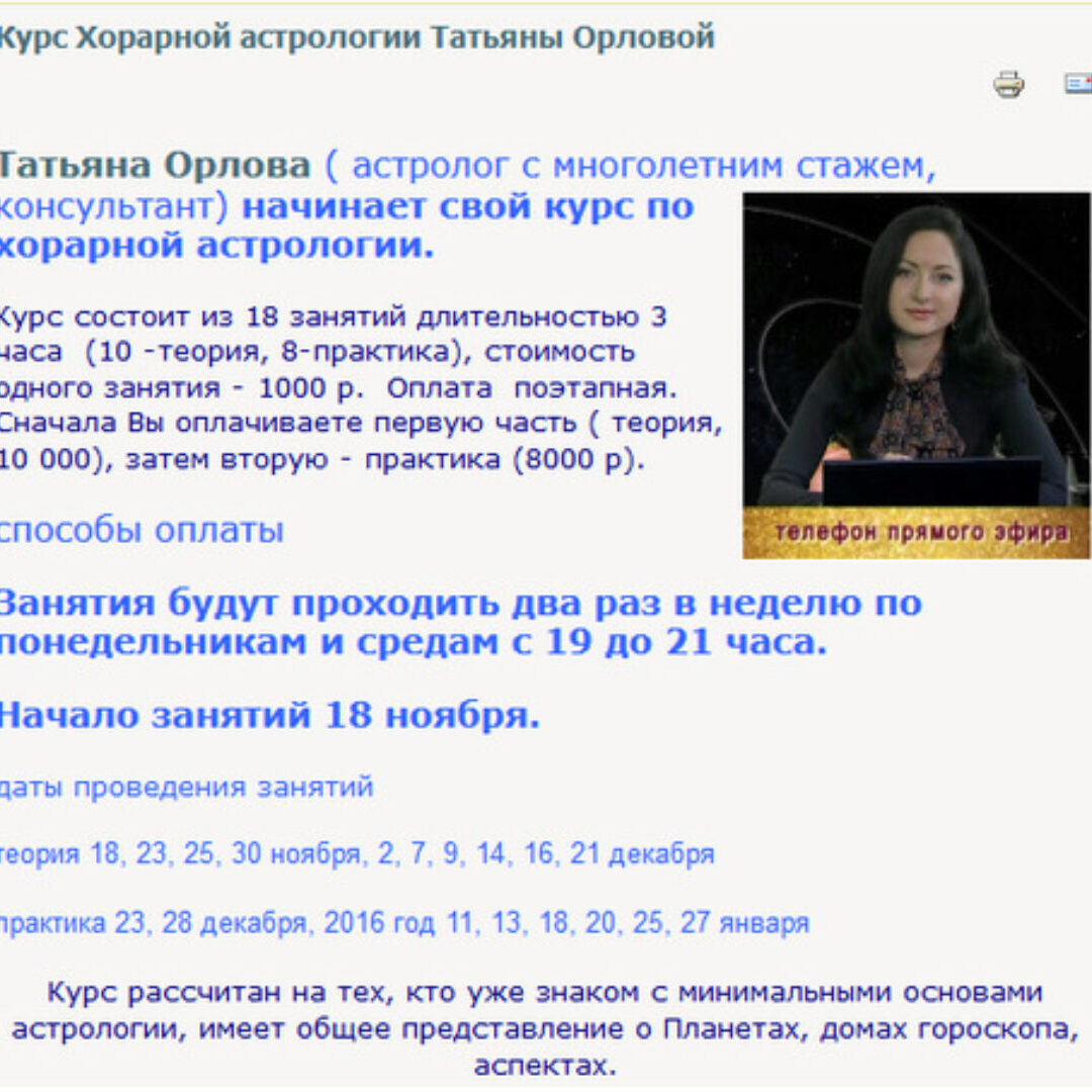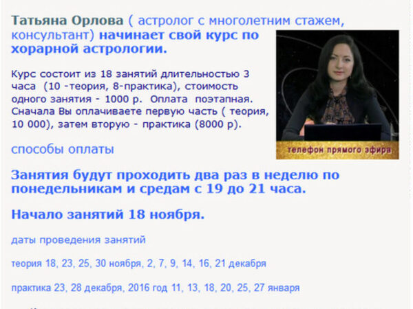 Татьяна Орлова «Хорарная Астрология 2» слив скачать