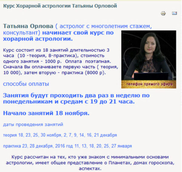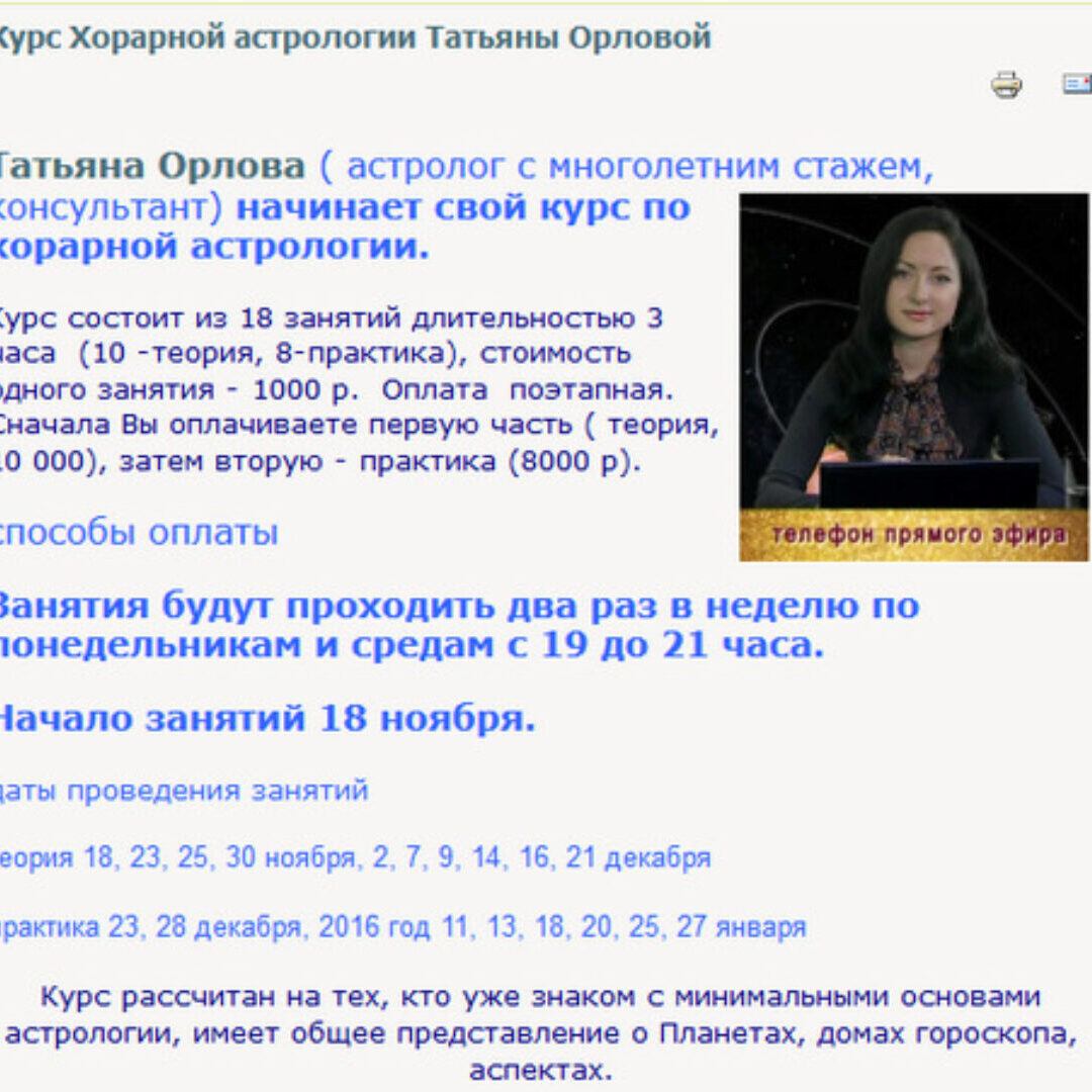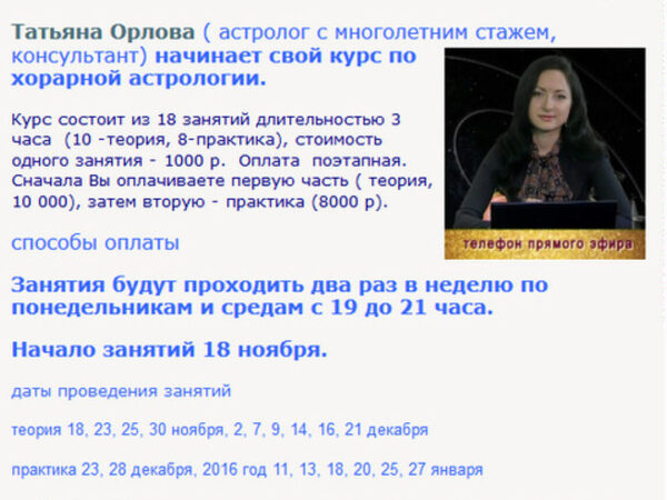 Татьяна Орлова «Хорарная Астрология 3» слив скачать