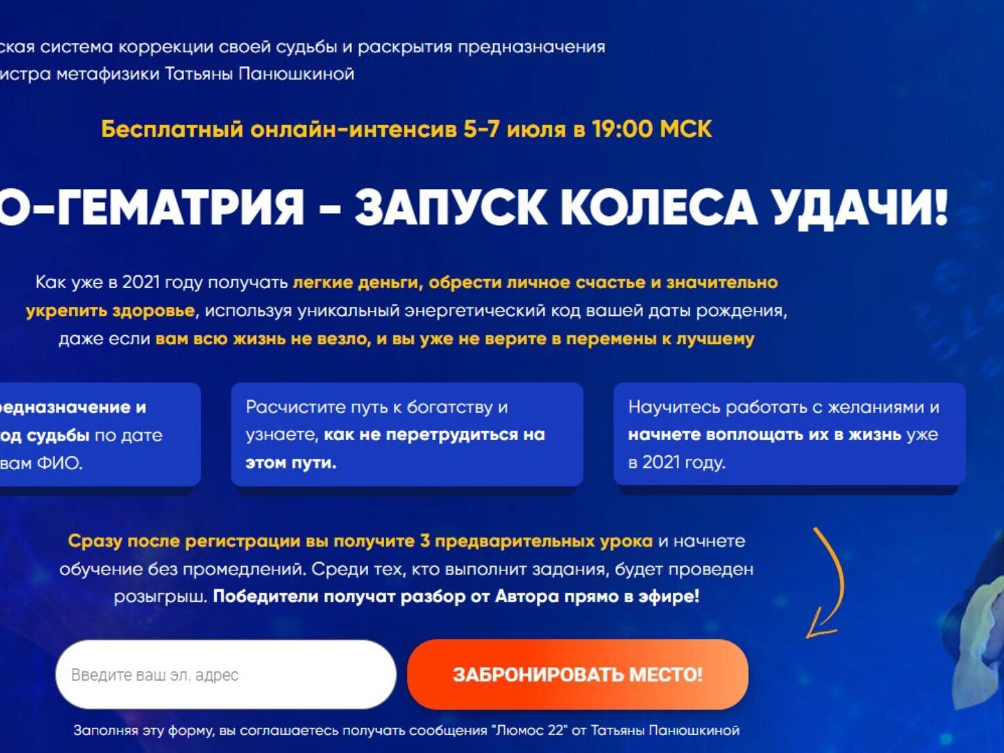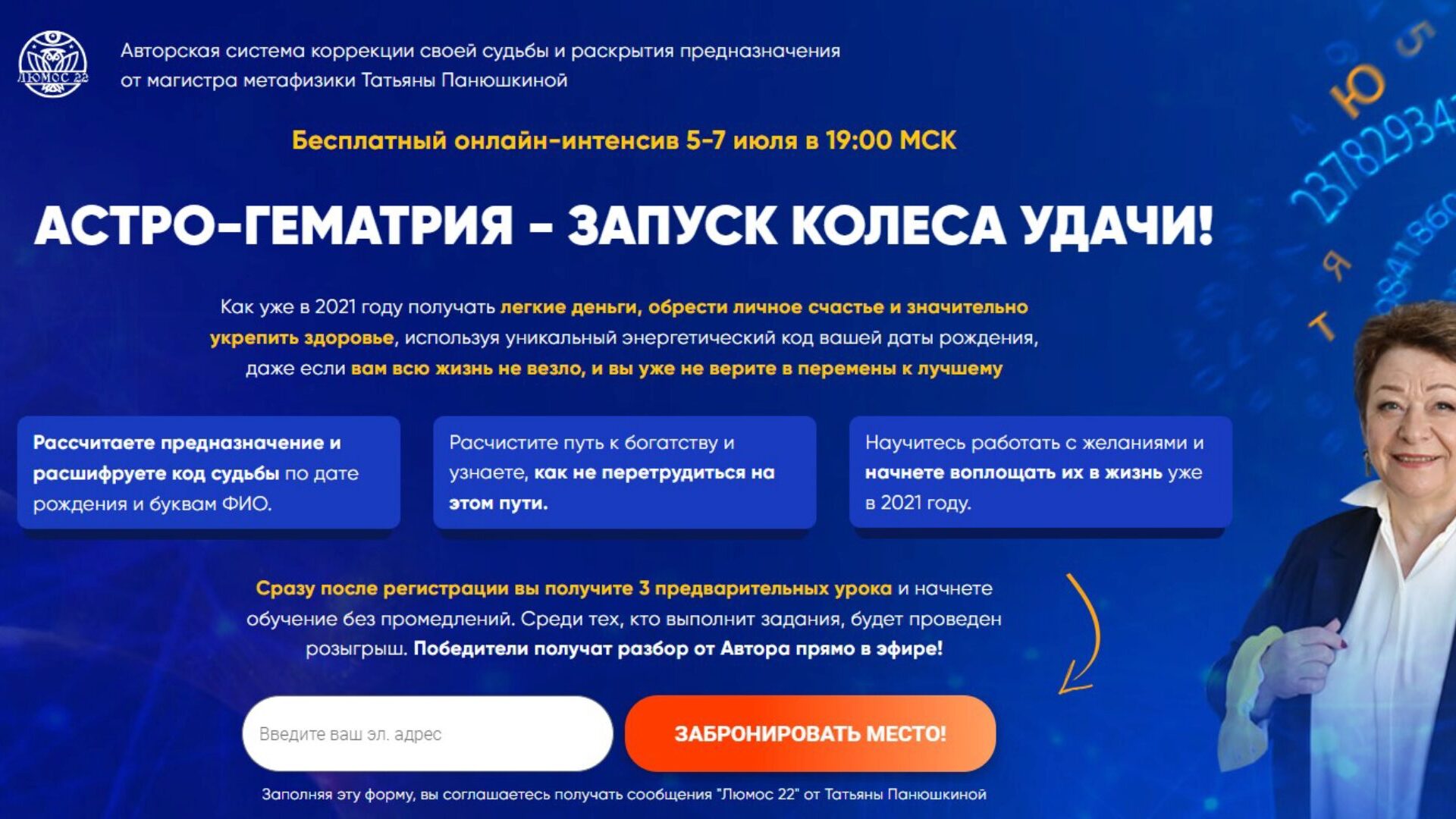Татьяна Панюшкина «Астро-Гематрия - Запуск колеса Удачи» слив скачать