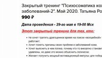 Татьяна Рожкова Закрытый тренинг «Психосоматика кожных заболеваний-2» слив скачать