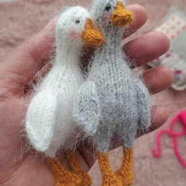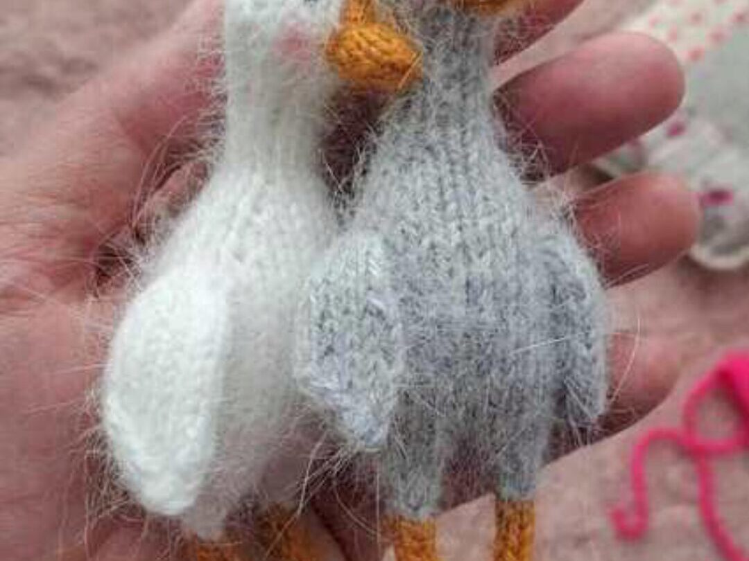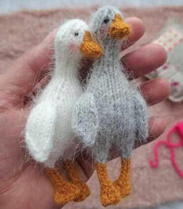 Размер игрушки зависит от выбранной пряжи. Мои гусики из пуха норки ростиком 11 см.