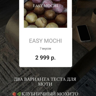 Mochi 2.0 в пакете: - тесто 2.0 для длительной заморозки и приготовления больших поставок - тесто и инструкции для сборок в домашних условиях для домохозяек - 15 вкусов начинок - фруктовое тесто - таблица расчета себестоимости - ссылки на формы и упаковку - упаковка поштучно А так же бонусом