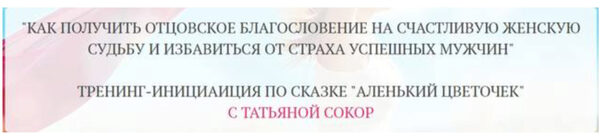 Татьяна Сокор «Как получить отцовское благословение на счастливую женскую судьбу и избавиться от страха успешных мужчин» слив скачать
