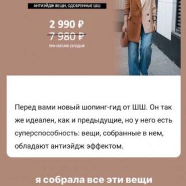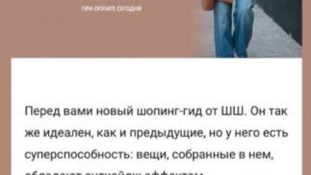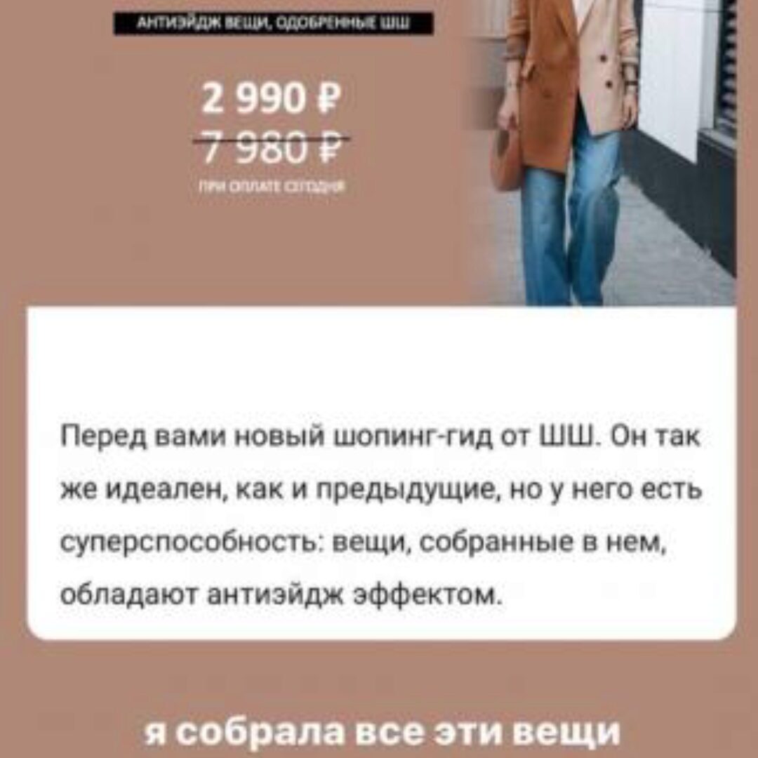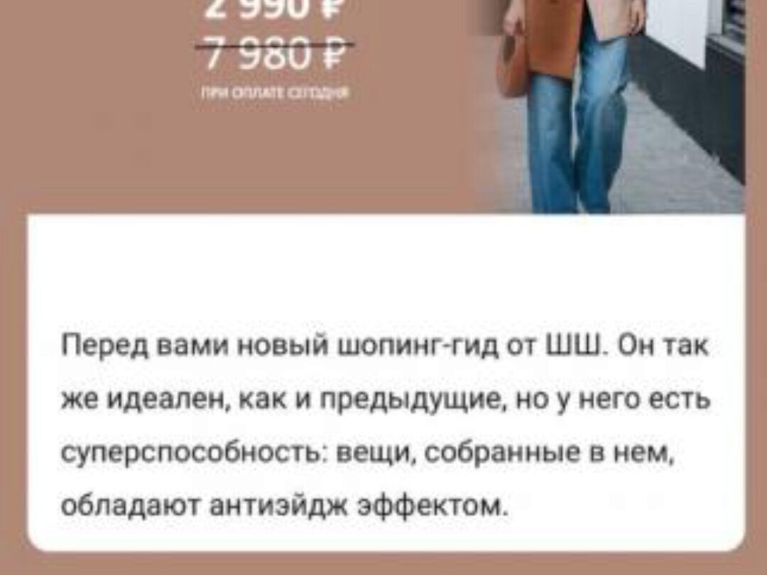 Два шопинг-гида - по российским и иностранным брендам. В каждый гид входит 650 вещей и 250 аксессуаров для создания базового гардероба. Гиды и подписку на закрытый клуб с ТТ можно купить как вместе, так и по отдельности. 28.02.23-28.03.23 Шоппинг-гид по российским меркам Шоппинг-гид по иностранным