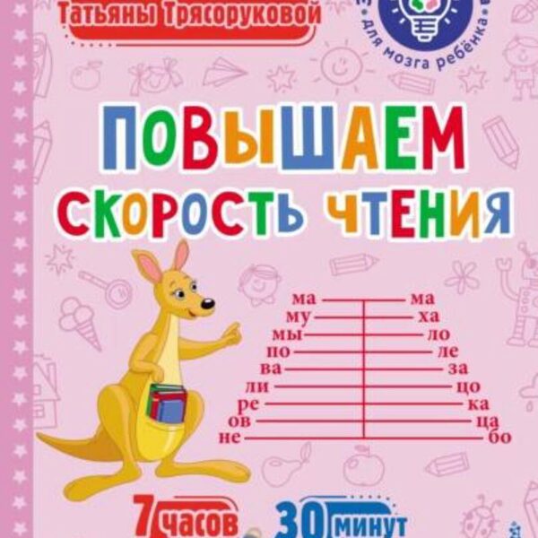 Курс Повышаем скорость чтения, автор Татьяна Трясорукова. Книга опытного педагога и психолога Т. Трясоруковой поможет улучшить технику чтения и увеличить скорость и глубину понимания всего за две недели увлекательных занятий. Ребёнок преодолеет страх перед большими текстами и будет значительно быстрее справляться с домашним заданием.