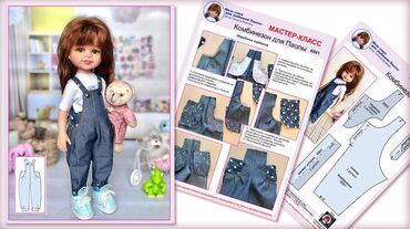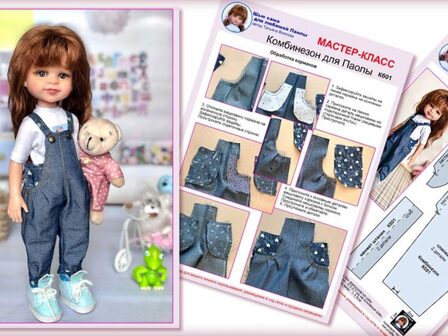 Выкройка в натуральную величину, в формате PDF - 2 страницы в 1 файле. на рост куклы 32-34см.