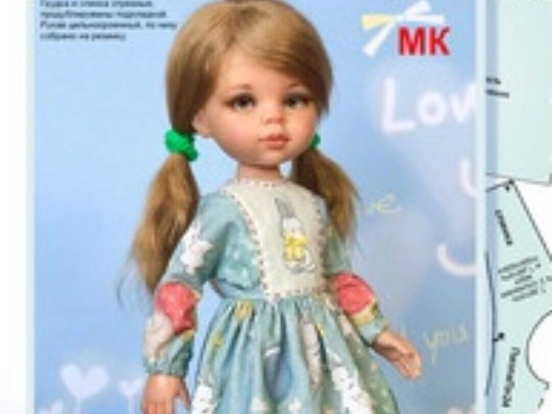 Выкройка в натуральную величину, в формате PDF - 2 страницы в 1 файле. на рост куклы 32-34см.