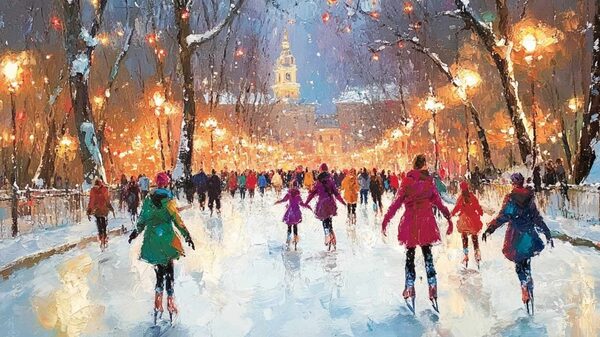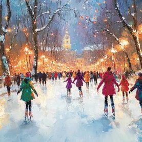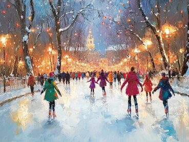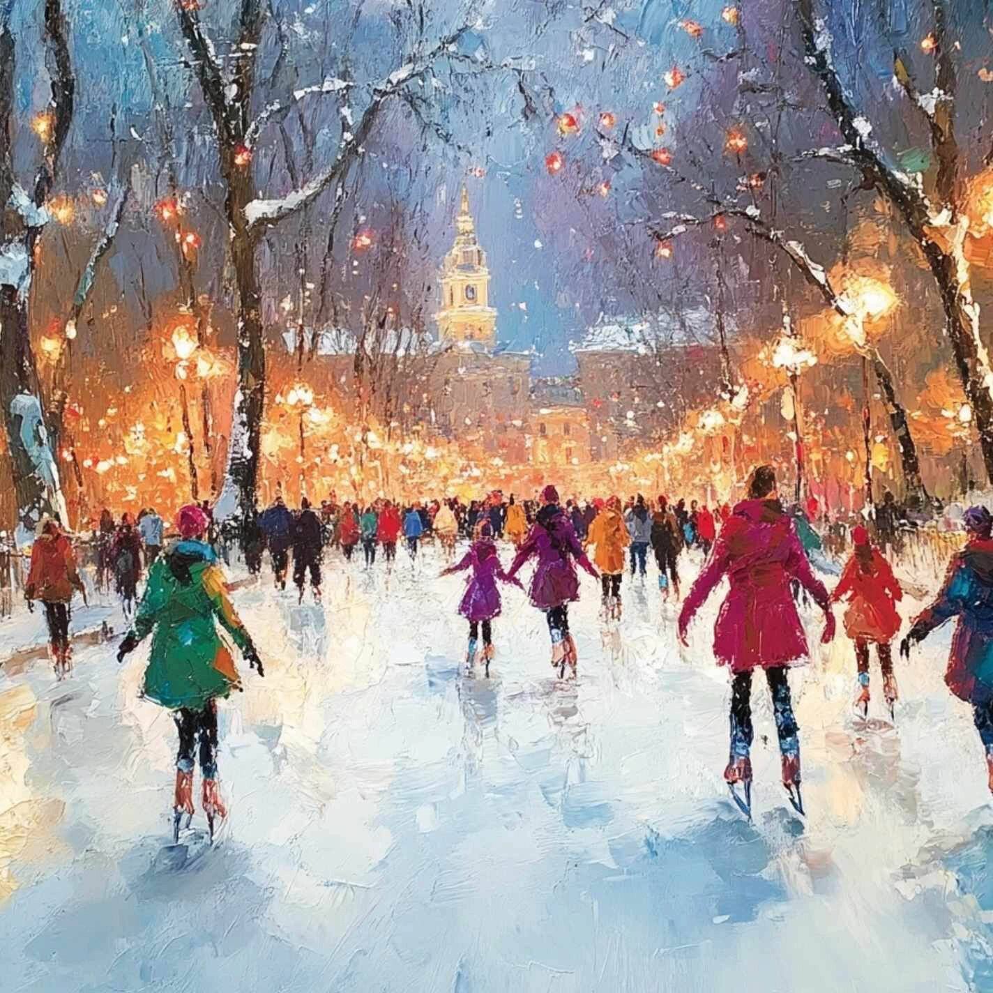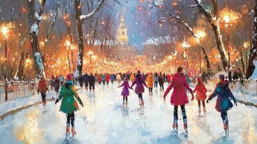 На очередном занятии марафона мы с вами напишем по-настоящему праздничный сюжет: каток в городском парке. Вы поймете, как писать фигуры людей, научитесь передавать свет фонарей и прописывать их отражения, а также напишете здания на заднем плане.