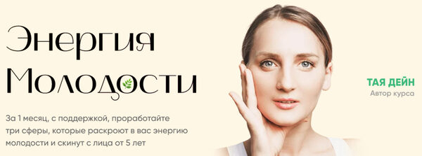 Курс Энергия молодости. Тариф лифт, автор Тая Дейн. Энергия молодости - это Комплексный курс омоложения, быстрое преображение лица