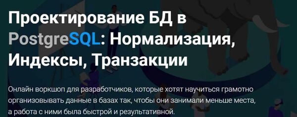 [Thinknetica] Проектирование БД в PostgreSQL: Нормализация, Индексы, Транзакции. Тариф Практик. Онлайн воркшоп для разработчиков, которые хотят научиться грамотно организовывать данные в базах так, чтобы они занимали меньше места, а работа с ними была быстрой и результативной.