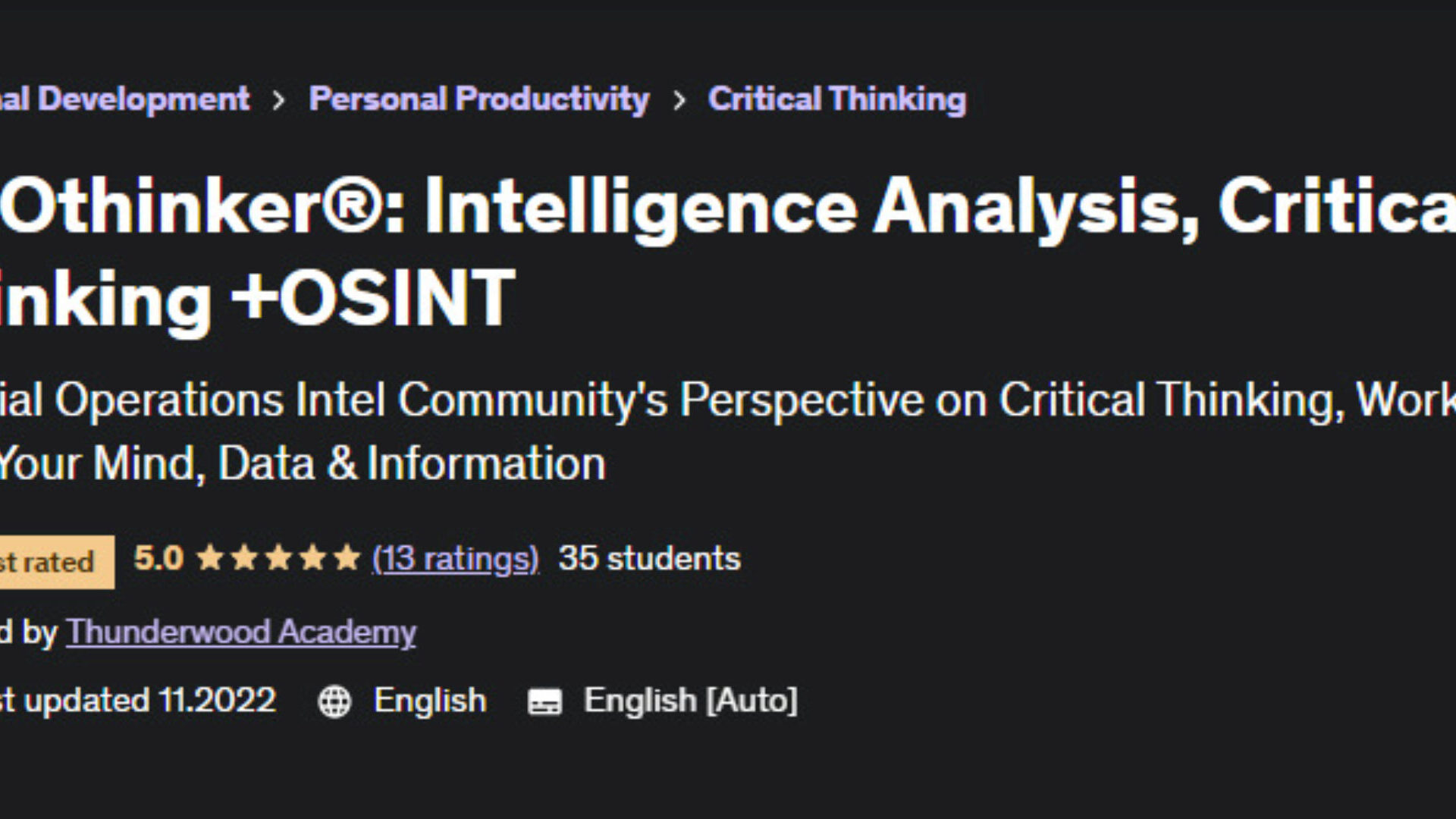 Thunderwood Academy «PROthinker®: анализ интеллекта, критическое мышление + OSINT» — Udemy слив скачать