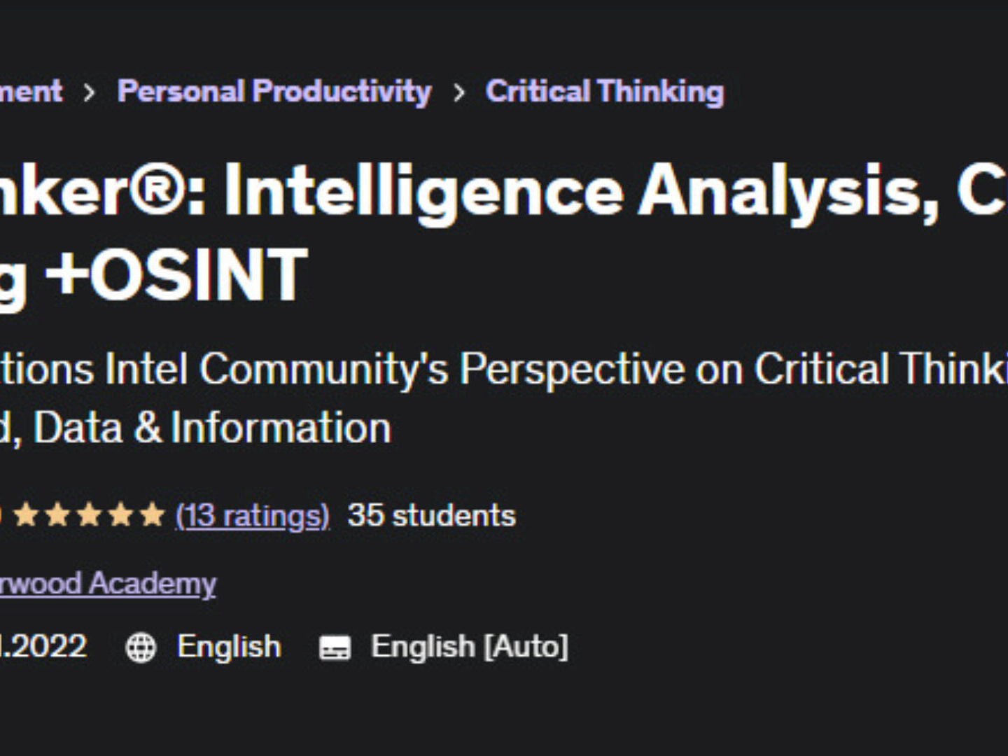 Отзывы о курсе [Udemy] PROthinker®: анализ интеллекта, критическое мышление + OSINT (Thunderwood Academy)