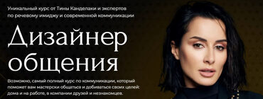 Курс Дизайнер общения Тариф Базовый, автор Тина Канделаки. Курс «Дизайнер Общения» в отличии от многих других, создан при непосредственном участии Тины Канделаки, которая является и профессионалом-практиком (ведущая и продюсер на ТВ, спикер конференций) и одной из самых влиятельных женщин России (по версии РИА Новости). Тина неоднократно повторяет, что многого добилась именно благодаря голосу, речи и умению договариваться в самых непростых ситуациях