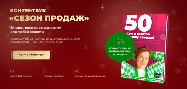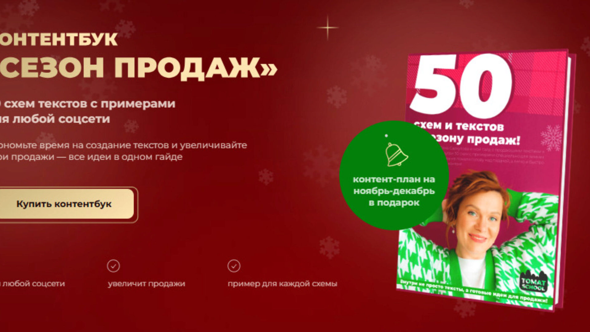 Курс ТомаТ - Контентбук Сезон продаж, автор Тома Саркулова. 50 схем текстов с примерами для любой соцсети