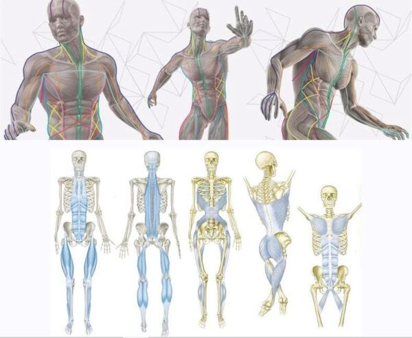 В основе этой теории лежит холистический подход - все в теле взаимосвязано и взаимозависимо.По виду анатомические поезда могут напоминать меридианы тела из Восточной медицины,но по сути,это линии передачи и удержания напряжения посредством соединительной ткани (фасции).Они были выявлены Майерсом в процессе исследования направления волокон соединительной ткани.